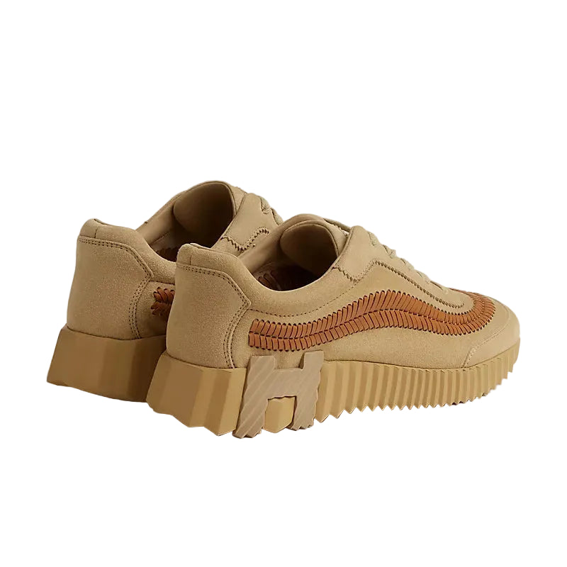 سنيكرز بتصميم عصري يجمع بين الأناقة والراحة، مصنوع من جلد ماعز شمواه مع جلد عجل مضفّر بنقشة متعرجة تضيف طابعًا مميزًا للتصميم. نعل خفيف بتصميم متباين يمنح مظهرًا حديثًا ومرونة عالية أثناء الحركة، بارتفاع 4 سم. بطانة ونعل داخلي من جلد الحمل الناعم لراحة تدوم طوال اليوم، مع عناية دقيقة بالتفاصيل تعكس جودة الصناعة الإيطالية. يأتي الحذاء مع زوج إضافي من أربطة الحذاء لتعدد خيارات التنسيق.